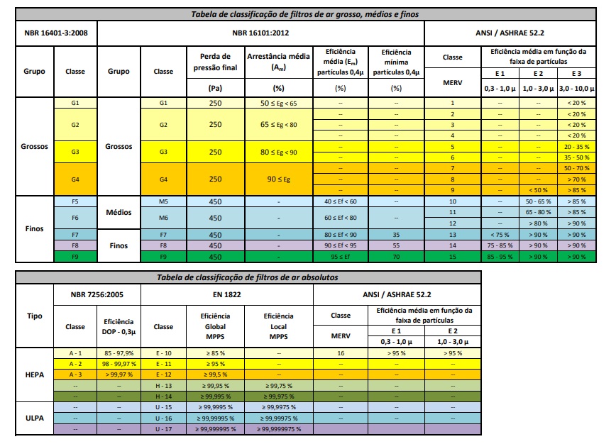 Com simples ou dupla filtragem, com grau de filtragem de G1 Até M6